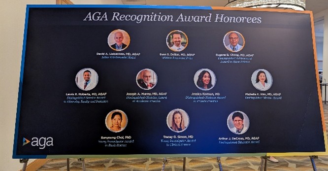 The first poster was awarded as a “Poster of Distinction.” An average of 4,500 abstracts are submitted to DDW each year, and only 10% are recognized with this award.