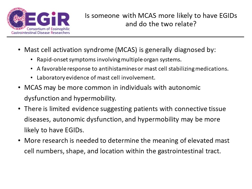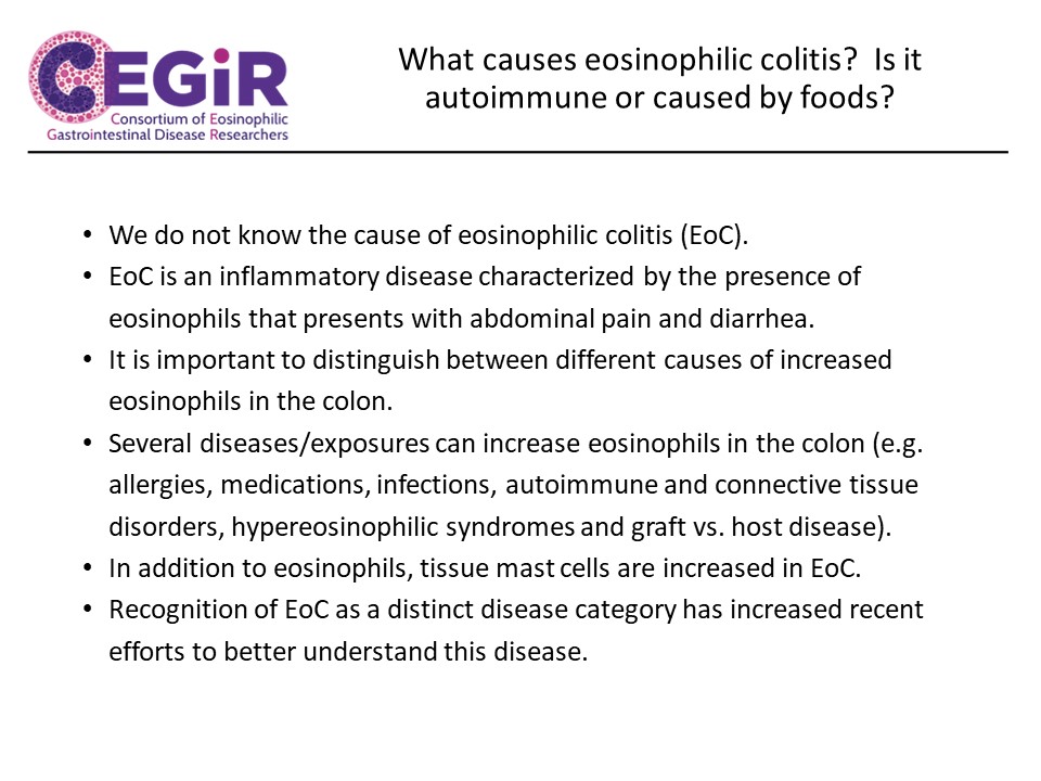 - CEGIR focuses on research projects involving patients with eosinophilic esophagitis (EoE), eosinophilic gastritis (EG), and/or eosinophilic colitis (EC).
